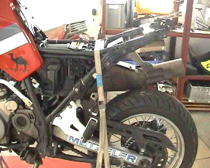 Tank sind abgebaut, das Heck ist komplett entfernt, der Hinterreifen ist schon