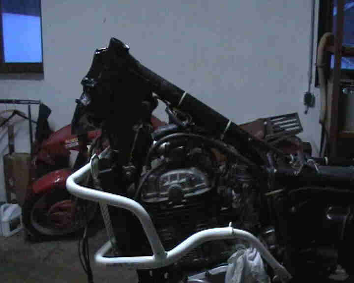 Stahlflex - Leitung wird angebaut, die Gabel ist zerlegt und wird überholt.
